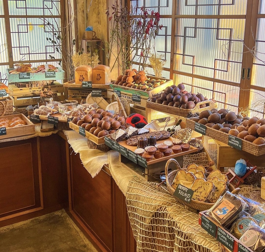 Inside, the split-level arrangement between ground and second floor preserves sightlines to the garden from multiple angles. The bakery elements — Greek yogurt, brunch items, a selection of freshly baked breads — are good enough to anchor the visit on their own terms. But the garden is why people come back.